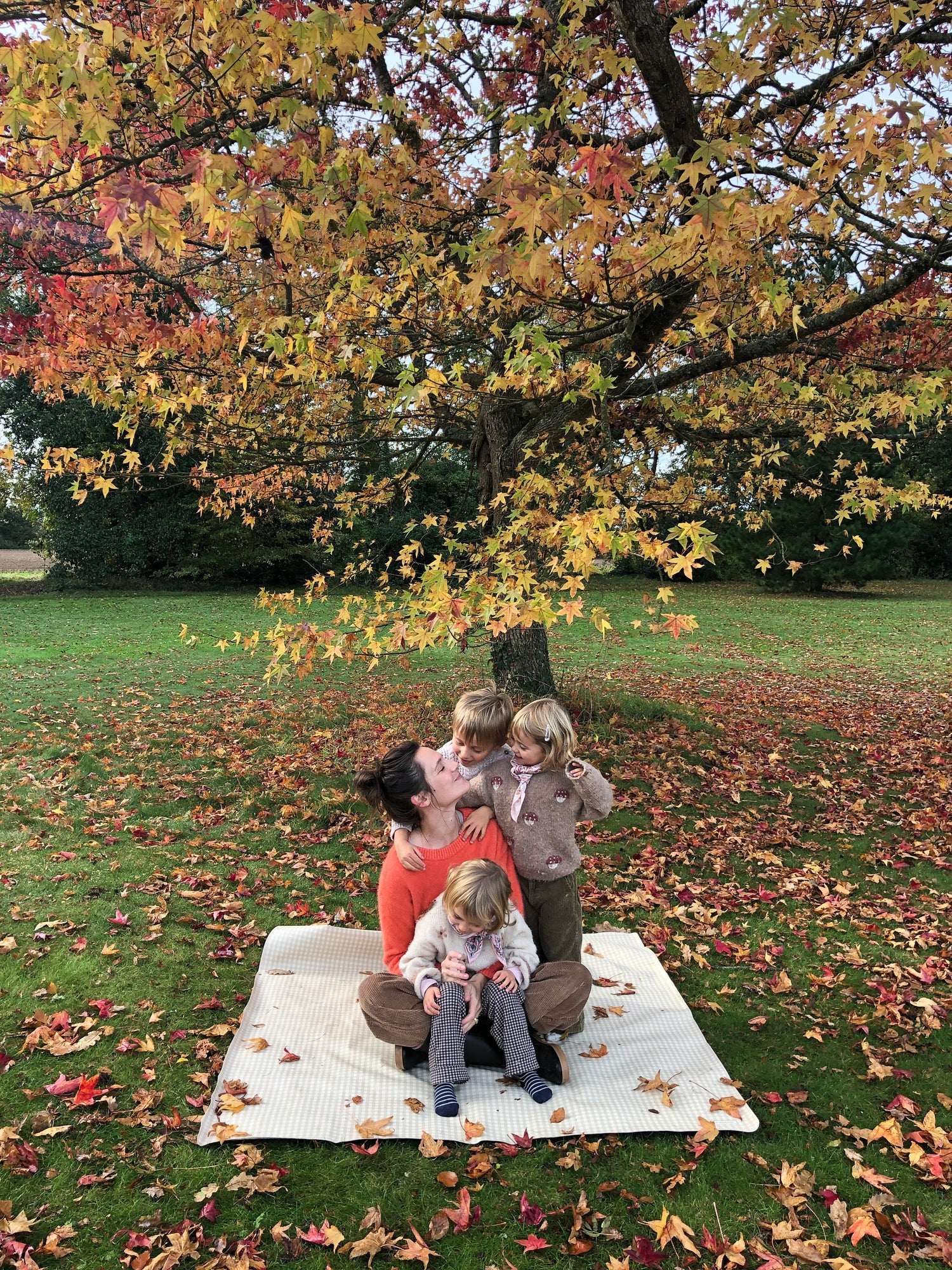 Puis, l’année suivante, mes jumelles sont arrivées. Trois bébés en 14 mois et cette question : que prendre en extérieur avec un (ou plusieurs !) bébé qui soit imperméable, doux, compact, joli et facile à entretenir ? Mon premier besoin a alors fait écho à un second: le même mais en plus grand. Une grande surface à poser et transporter partout, sur laquelle je pourrais installer mes trois petits, sans stress ni contrainte.