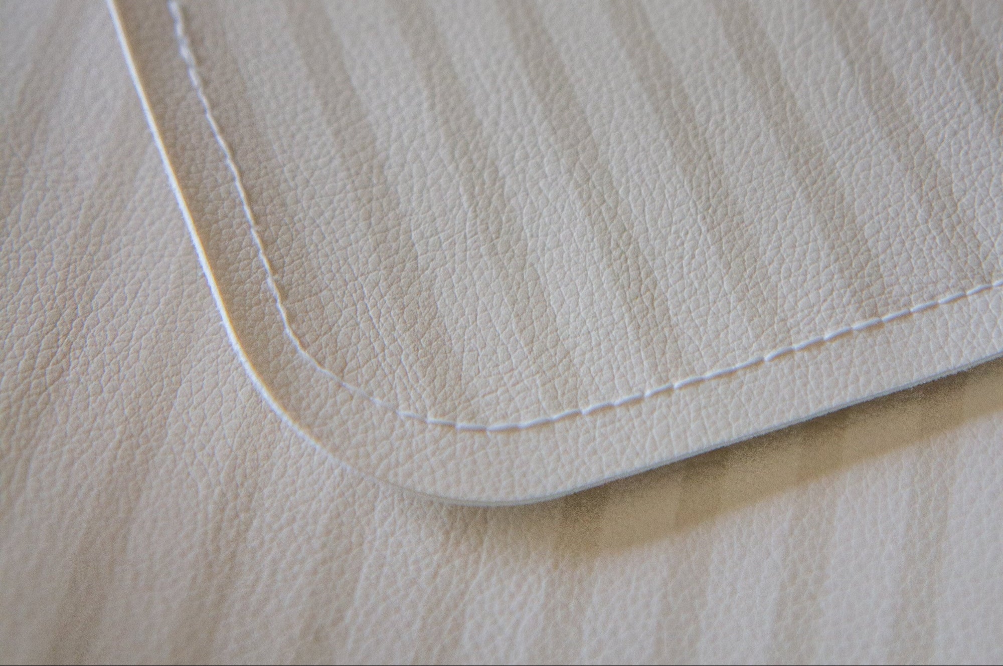 Une fine surpiqûre périphérique et des coins arrondis pour une finition élégante mais surtout pour un bon maintien à plat de nos mats.