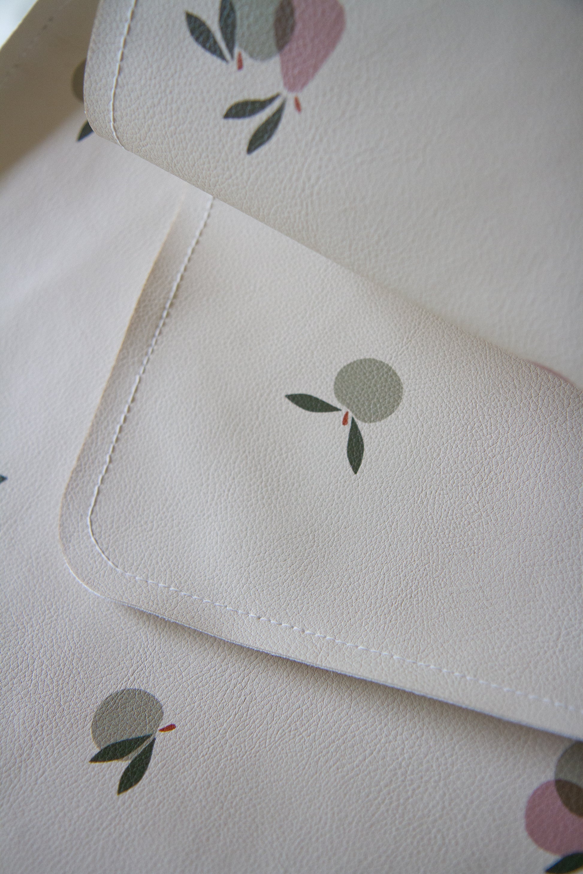 Une matière unique : douce, souple, légèrement veloutée, qui rappelle le cuir sans en reproduire les contraintes. Ni collant comme une toile cirée, ni rigide comme certains revêtements techniques, il offre une belle tenue et un confort d’usage rare.