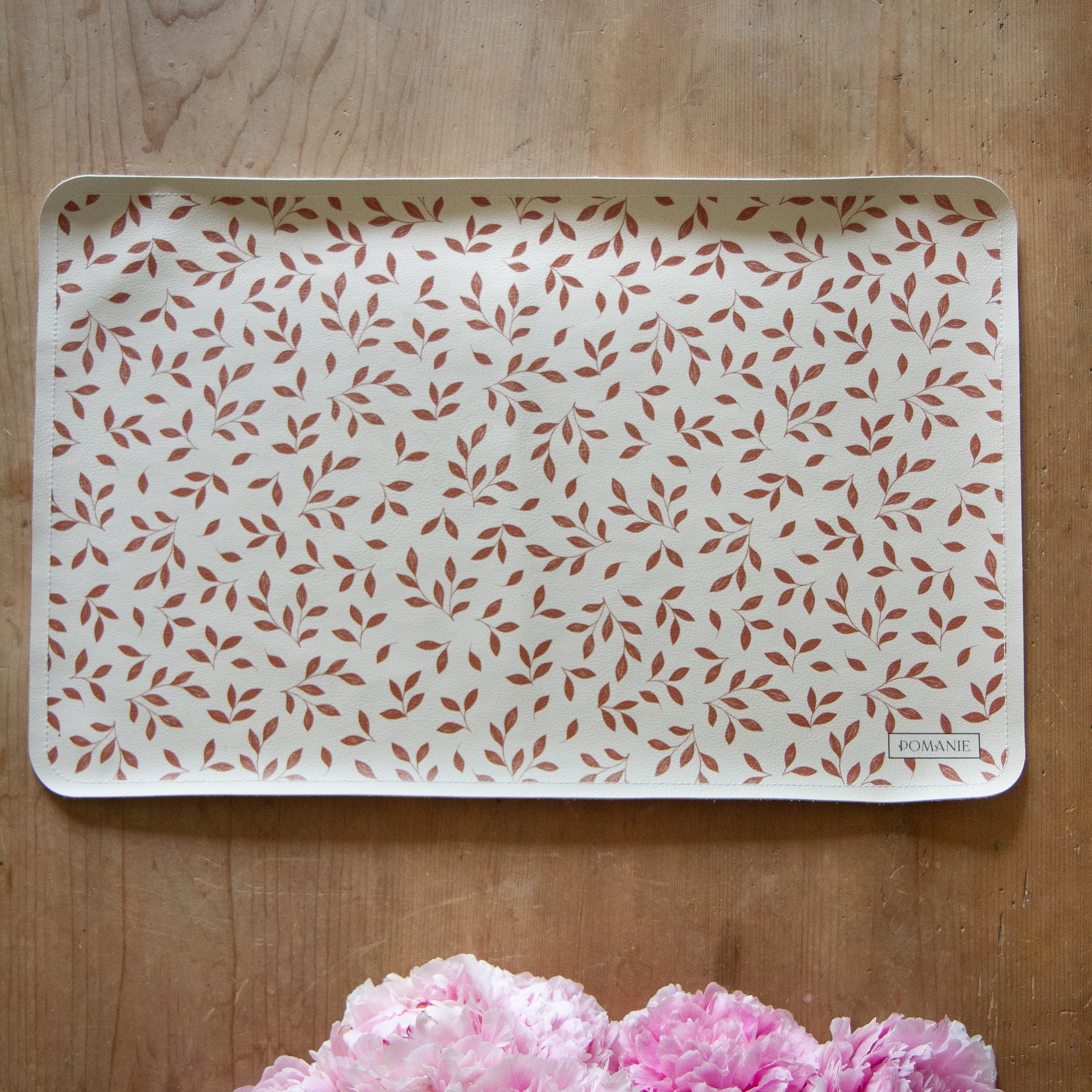 Fonctionnel et raffiné, il s’utilise aussi bien en intérieur qu’en extérieur. Sa face supérieure imperméable se nettoie d’un simple coup d’éponge, tandis que son revers antidérapant assure une parfaite stabilité, sur tout type de surface. Il se plie facilement, reste compact une fois replié, et peut même se suspendre grâce à ses accroches discrètes.
